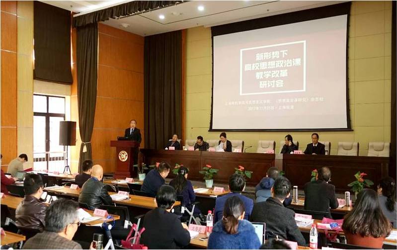 2017年11月25日,学校在行政楼330会议室召开“新形势下高校思想政治理论课教学改革研讨会”。会议由校长胡晟致辞,副校长杨若凡主持,来自复旦大学、同济大学、华东师范大学、上海海洋大学、上海海事大学、上海第二工业大学、上海电力学院、上海政法学院、上海商学院、上海健康医学院、上海立信会计金融学院、上海体育学院、上海建桥学院等高校的专家学者参加研讨。会议由我校太阳集团城娱8722主办承办,华东师范大学政治学系《思想政治课研究》杂志协办。上海市教委德育中心副主任宗爱东、上海思政研究会秘书长卢天琳、我校教务处长刘军、太阳集团城娱8722院长何小刚、太阳集团城娱8722直属党支部书记顾建伟出席会议,太阳集团城娱8722全体教师参加会议。