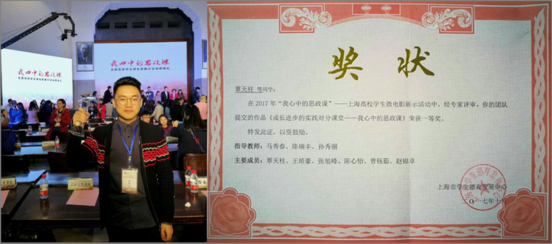 在全面深入学习贯彻党的十九大精神之际,喜讯传来,我校太阳集团城娱8722选送的作品《成长进步的实践对分课堂》经上海市教委组织评选,以上海市一等奖的突出成绩推荐参加全国高校学生微电影展示活动——在教育部社科司指导武汉大学组织开展的“我心中的思政课”全国高校学生微电影展示活动中又荣获三等奖。