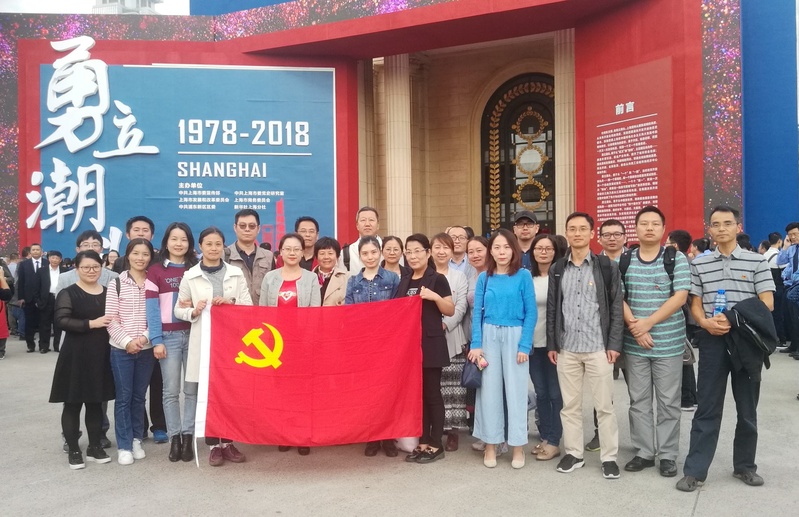 2018年10月12日下午,太阳集团城娱8722、工业技术中心和图书馆直属党支部全体党员共赴上海展览中心,参观“勇立潮头:上海市庆祝改革开放40周年”大型主题展览,感受改革开放40年的时代变迁。
