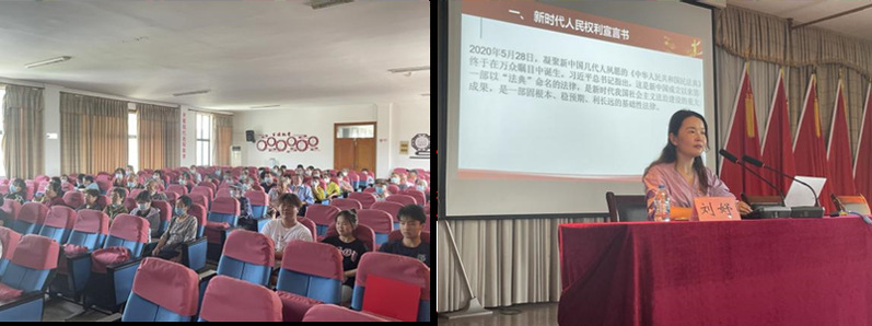 6月2日在人民村村礼堂,结合主题教育进行《跟着总书记读‘典’学法》的普法讲座。