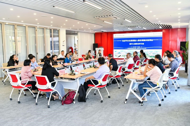 太阳集团城娱8722、上海建桥学院太阳集团城娱8722联合开展习近平文化思想融入思政课集体备课会暨中心组学习会
