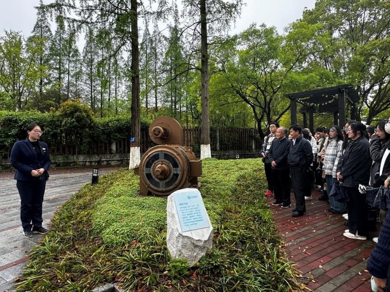 胡晟、孙明伦等带领学生参观了上海电机厂企业展示中心,瞻仰了毛主席坐像,通过观看模型、实物、音像资料等,同学们深入全面地了解上海电机厂的发展历程,以及“首创精神”“扁担电机”精神的来源、内涵。接着,胡晟、孙明伦等带领同学们参观了电机厂部分一线生产车间。通过两个多小时的现场授课,同学们不仅了解了改革开放40余年历程中上海电机厂出色完成各项制造任务,为重点民生工程建设所作出的突出贡献,更对上海电机厂的精神谱系——“首创” 精神、“一丝不苟、精益求精” 精神、“扁担电机” 精神、“万吨” 精神、“蚂蚁啃骨头” 精神、“李斌” 精神等有了更深切的体会和认知。
