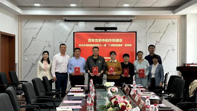 党委宣传部部长朱成实感谢校内外思政指导员对学校立德树人工作深化创新的大力支持,特别强调两位企业专家的倾情参与为学校立德树人工作的不断深化注入了创新动能。他表示,当前学校正在大力推动应用型人才培养改革,在理论教学体系构建、产教协同育人机制深化、学科专业内涵建设等方面持续发力,要紧密结合深入贯彻中央八项规定精神学习教育部署,不断改进优化优良工作作风、奋力提振全校师生精气神,推动学校办学水平和社会影响力的不断提升。